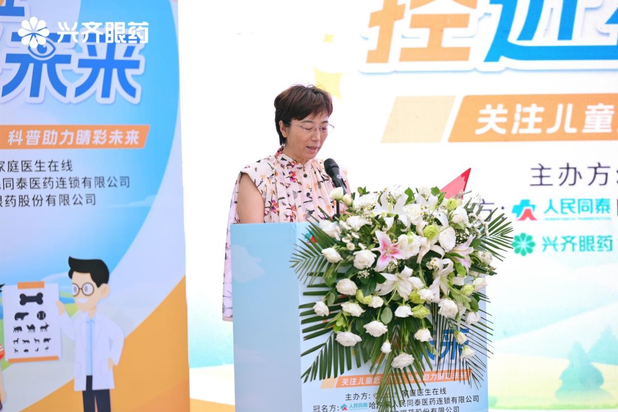 哈爾濱人民同泰醫(yī)藥連鎖有限公司副總經(jīng)理柴靜榮在致辭中直面近視低齡化、重度化挑戰(zhàn),強調(diào)企業(yè)踐行“打造卓越品牌、致力大眾健康”使命的責(zé)任擔(dān)當(dāng)。依托全省350余家社區(qū)門店網(wǎng)絡(luò)及線上線下一體化平臺,全力支持公益視力檢測、科普講座等行動,并發(fā)揮執(zhí)業(yè)藥師團隊專業(yè)力量,使科學(xué)近視防控理念精準(zhǔn)觸達家庭場景。