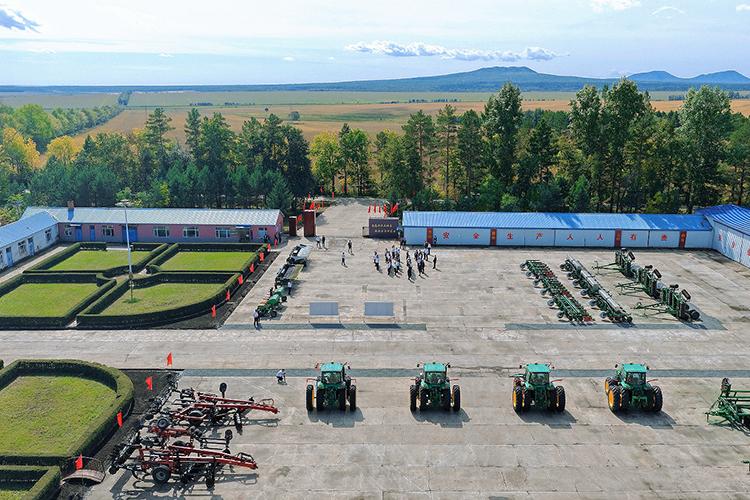 引龍河農(nóng)場構(gòu)建了完善的農(nóng)機存放與裝備體系,設有一類農(nóng)機停放場 7 處、二類停放場 7 處、臨時停放場 5 處,總面積 10.8 萬平方米,可充分滿足農(nóng)機存放需求。全場農(nóng)機總動力達 4.18 萬千瓦,155 臺動力機車覆蓋“耕、種、管、收”全環(huán)節(jié),485 臺(套)農(nóng)機具嚴格落實“五凈、四不漏、六封閉、一完好”管護標準。