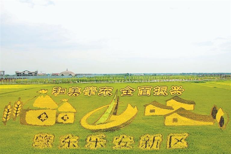 樂安新區(qū)的稻田畫從5月份開始插秧制作,進入7月份呈現(xiàn)出最佳觀賞效果,觀賞期將持續(xù)至10月份?!八境墒熘两瘘S色,稻田畫更漂亮,有另一種詩情畫意的自然美?!备浇l(xiāng)鎮(zhèn)五湖村曲家屯農(nóng)戶李建國說。
