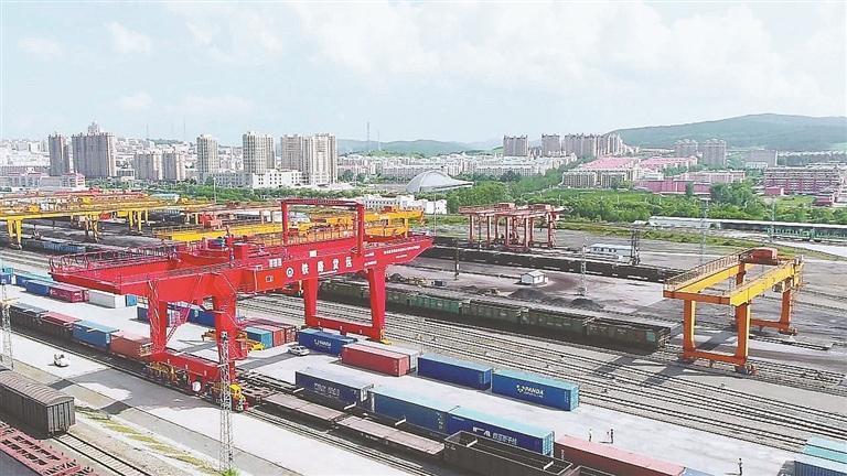 6日上午,百年口岸綏芬河鐵路車站換裝貨場內,塔吊在高效有序地對進出境貨運列車進行著換裝作業(yè)。