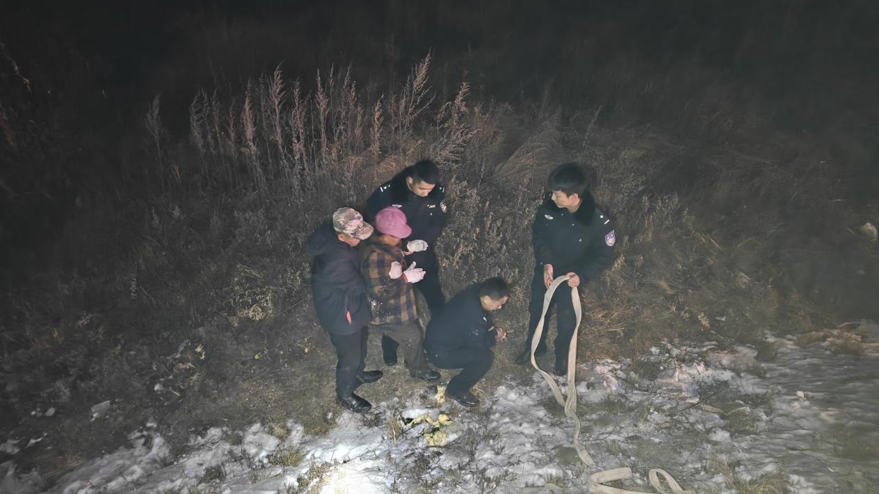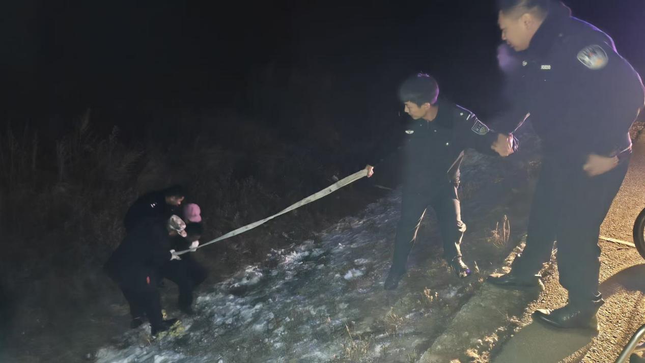 據(jù)了解,當(dāng)時(shí)呼瑪縣公安局興華派出所民輔警正對(duì)轄區(qū)開(kāi)展常態(tài)化巡查,發(fā)現(xiàn)一位群眾在路邊攔住警車,民輔警立即停車查看情況。詢問(wèn)得知,該群眾的妻子乘坐電動(dòng)輪椅時(shí)由于天黑路滑不慎駛進(jìn)了深溝,因其妻子年過(guò)六旬身體殘疾且行動(dòng)不便,墜入深溝摔倒后無(wú)法起身,恰好此時(shí)看到巡邏的警車,便立刻攔車尋求幫助。