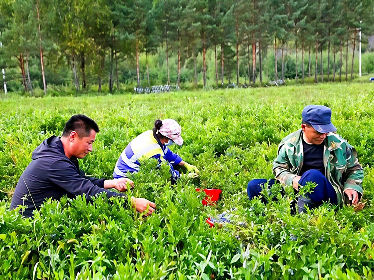 林場工作人員正在采摘藍莓(張凱強 攝)