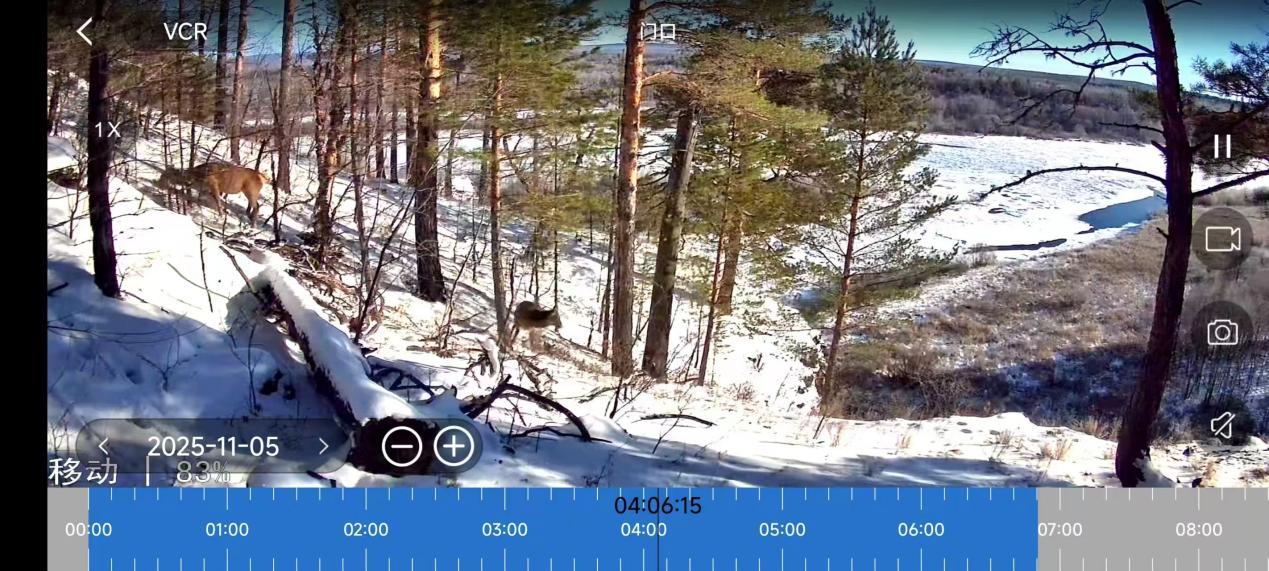 監(jiān)控畫面中,狍子時而低頭啃食積雪下的草本植物與木本嫩枝,時而抬頭警覺張望,盡顯食草動物的溫順靈動。猞猁則步伐穩(wěn)健,目光銳利卻不張揚(yáng),構(gòu)成了一幅難得的野生動物同框畫卷。作為東北林區(qū)常見的野生動物,狍子能耐受-60℃的嚴(yán)寒,而猞猁的出現(xiàn),更印證了當(dāng)?shù)厣鷳B(tài)系統(tǒng)的完整性。