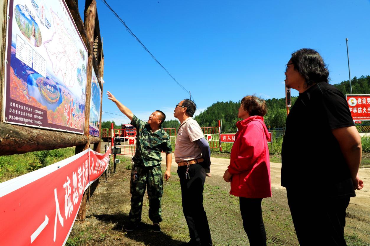 阿木爾林業(yè)局1—21線管護員李瑞向游客介紹旅游景點(王力 攝)