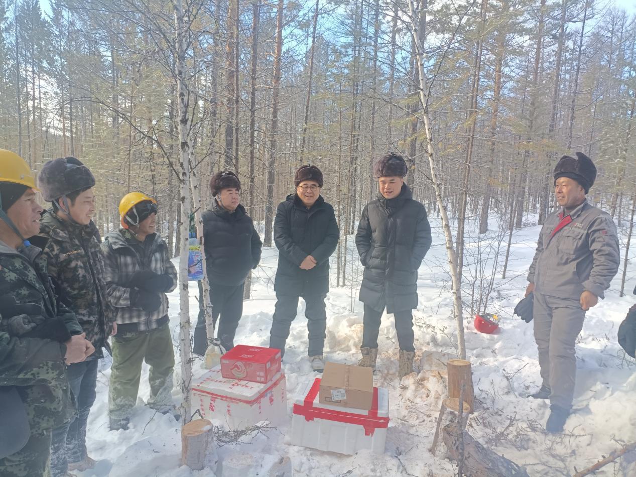 深入一線察實(shí)情 溫情速遞聚人心。慰問組深入作業(yè)現(xiàn)場(chǎng),實(shí)地查看冬季營(yíng)林生產(chǎn)質(zhì)量,與一線職工面對(duì)面深入交流,詳細(xì)詢問作業(yè)進(jìn)度及實(shí)際困難。隨后送上安全帽、防滑手套等防寒防護(hù)物資與各類食品補(bǔ)給,將組織關(guān)懷送達(dá)一線,讓堅(jiān)守崗位的職工倍感溫暖與鼓舞。