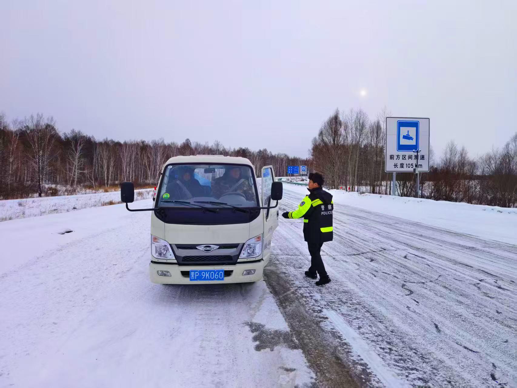 隨后,民輔警駕駛警車小心翼翼地穿行在積雪路段,一邊緩慢行駛,一邊實時觀察路面情況,并不時向游客講解雪天出行安全常識,提醒景區(qū)內(nèi)棧道濕滑需謹慎慢行。臨別前,呼瑪公安民輔警再次叮囑游客注意游覽安全,及時關(guān)注天氣變化和返程路況,必要時可隨時聯(lián)系景區(qū)執(zhí)勤崗點求助。