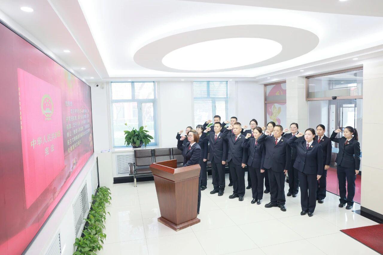 “我宣誓:忠于中華人民共和國憲法,維護憲法權威,履行法定職責,忠于祖國、忠于人民……”在黨組書記、檢察長趙麗葳帶領下,全體干警舉起右拳,目光堅定,跟誦誓詞,鏗鏘有力的誓言,久久回響,激蕩人心。傳遞著檢察人員忠誠履職盡責、維護公平正義的堅毅決心,是初心使命的再宣誓,是接續(xù)奮斗的再出發(fā)。