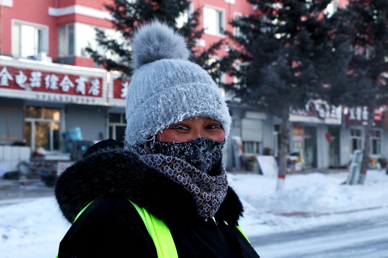 阿木爾林業(yè)局環(huán)衛(wèi)工在極寒天氣中依舊堅(jiān)守在崗位上(王力 攝)