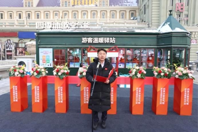 四季沐歌集團(tuán)總裁李駿在儀式講話中指出:“科技助力美好生活”絕非一句空洞口號(hào),而是集團(tuán)深耕綠色發(fā)展、踐行社會(huì)責(zé)任的核心內(nèi)核與行動(dòng)綱領(lǐng),依托前沿低碳技術(shù)打造的“溫暖驛站”應(yīng)用場(chǎng)景,以綠色賦能城市的生動(dòng)實(shí)踐贏得了廣大游客的深度認(rèn)可;面向未來(lái),驛站將完成從便民服務(wù)場(chǎng)景到低碳科普實(shí)踐基地的價(jià)值進(jìn)階,這既是企業(yè)低碳理念的具象化延伸,更是以場(chǎng)景為媒、以實(shí)踐為橋播撒綠色發(fā)展種子的責(zé)任踐行,四季沐歌始終堅(jiān)信冰雪經(jīng)濟(jì)的高質(zhì)量發(fā)展離不開(kāi)綠色低碳的底色,集團(tuán)將持續(xù)以技術(shù)創(chuàng)新助力哈爾濱冰雪經(jīng)濟(jì)與綠色發(fā)展深度融合,讓人與自然和諧共生的理念在這座冰雪之城中落地生根,向五湖四海傳遞延伸。