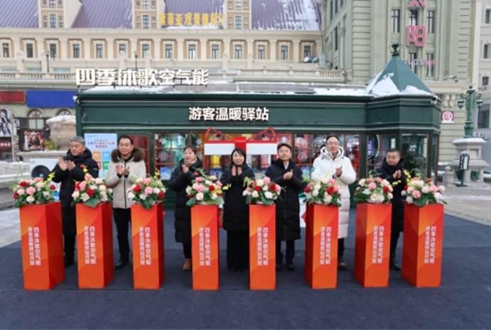 12月28日,索菲亞廣場(chǎng)游客溫暖驛站開(kāi)館暨太空雙能光伏直驅(qū)系列新品發(fā)布儀式在哈爾濱舉行。此次活動(dòng)既是哈爾濱市升級(jí)“寵客”服務(wù)、樹(shù)立溫暖文旅新標(biāo)桿的有力舉措,也是四季沐歌空氣能在極寒地區(qū)推廣綠色清潔能源的重要實(shí)踐。