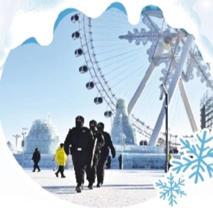 新年伊始,黑龍江省哈爾濱市氣溫降至零下20攝氏度,“哈氣成冰”在這里更加具象化了。在冰雪大世界園區(qū)內(nèi),各種各樣的冰雕建筑云集,氣溫比市區(qū)更低?!把┗μ燧啞鄙狭鲃?dòng)著光暈,數(shù)萬名游客的歡呼聲在冰雕叢林中回蕩。涌動(dòng)的人潮中,一抹抹藏藍(lán)身影用默默付出,守護(hù)著這份冬日里的熱烈與祥和。
