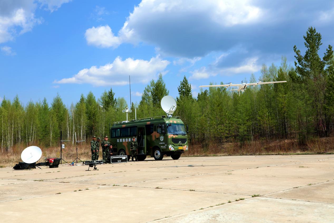 阿木爾林業(yè)局森防隊(duì)員練習(xí)起飛無人機(jī),實(shí)現(xiàn)實(shí)時傳輸“火場”圖像(王力 攝)