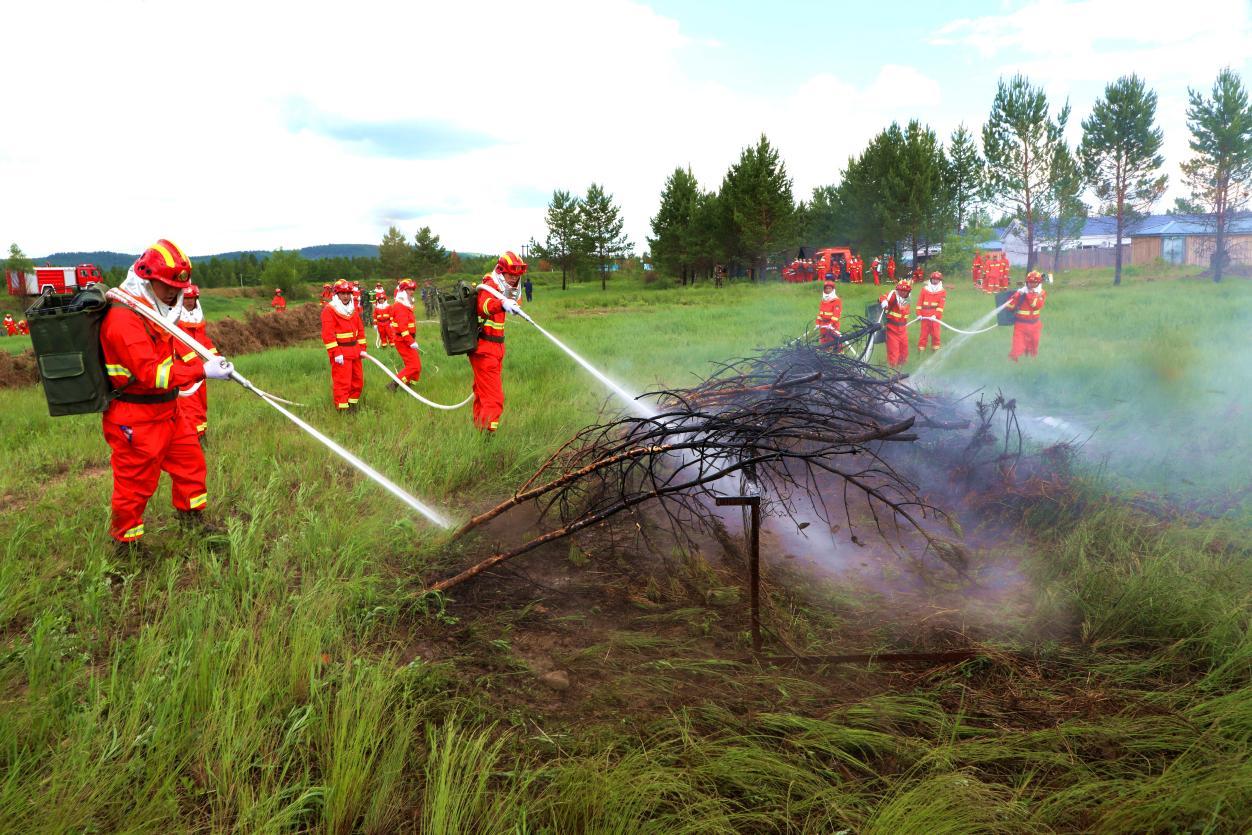 阿木爾林業(yè)局森防隊(duì)員演練“以水滅火”科目(王力 攝)