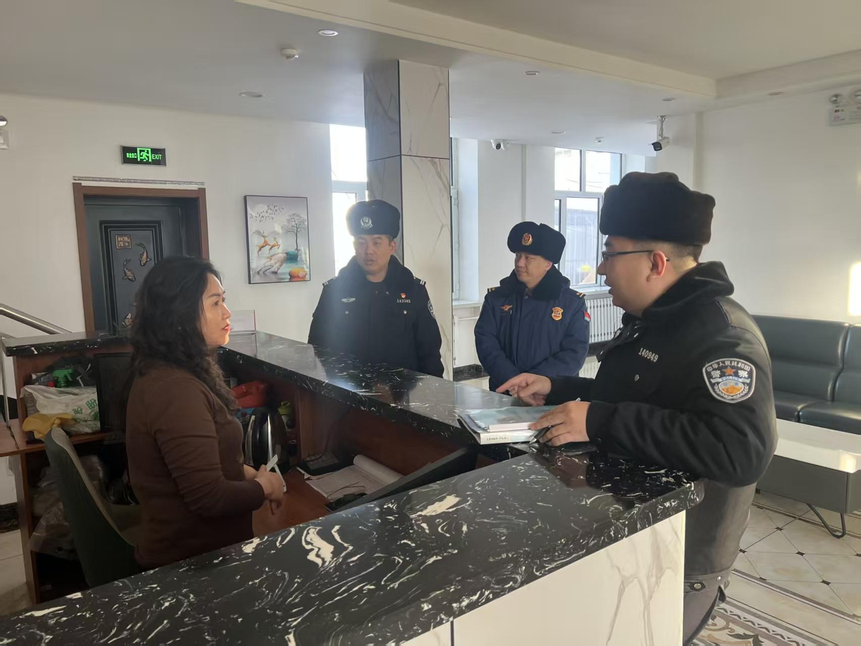 黑龍江經(jīng)濟網(wǎng)訊(李金娜)為進一步強化轄區(qū)住宿行業(yè)安全管理,及時消除潛在安全隱患,近日,大興安嶺松嶺區(qū)公安局治安大隊聯(lián)合小揚氣鎮(zhèn)派出所及區(qū)消防救援大隊,對轄區(qū)內(nèi)賓館、旅店、民宿展開全面安全檢查。