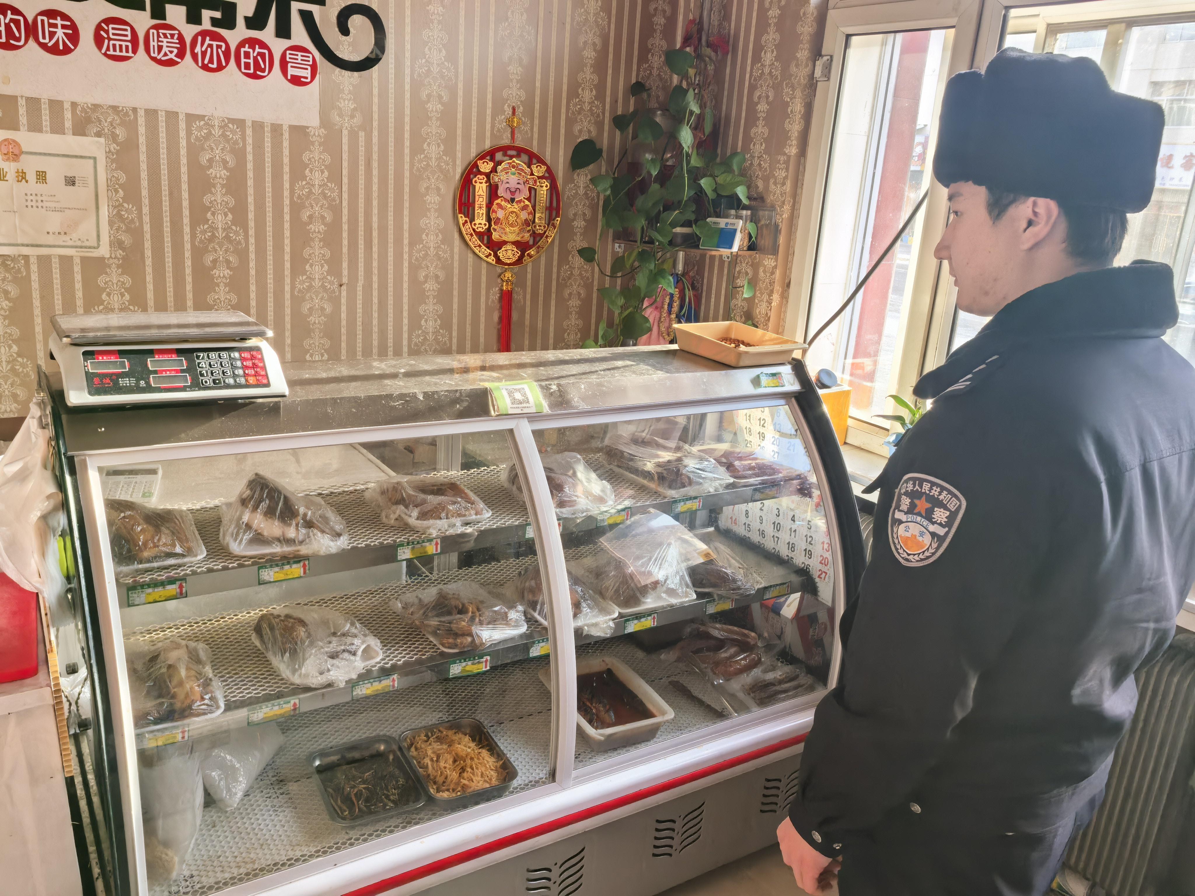 民輔警結(jié)合節(jié)前市場特點,采取“明察暗訪+隨機抽檢”方式,對轄區(qū)肉制品經(jīng)營店鋪開展全面排查。現(xiàn)場檢查中,發(fā)現(xiàn)1家店鋪環(huán)境衛(wèi)生不達標,執(zhí)法民警當即責令其現(xiàn)場整改。