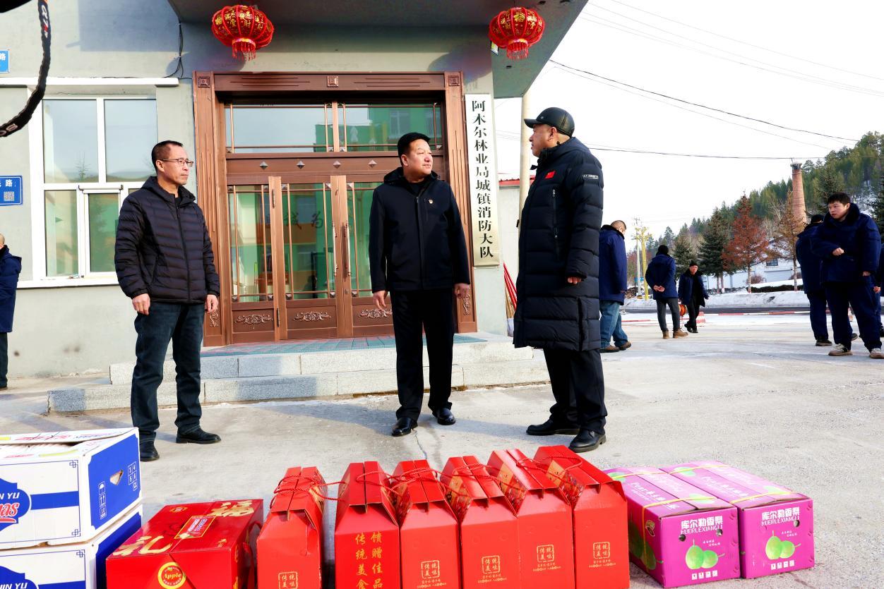 在城鎮(zhèn)消防大隊,慰問組實地查看消防戰(zhàn)斗員備勤值守狀態(tài),詳細了解應急處置準備工作,叮囑全體戰(zhàn)斗員時刻繃緊安全弦,嚴陣以待、快速響應,全力防范處置各類火災險情,堅決守護林區(qū)平安穩(wěn)定。