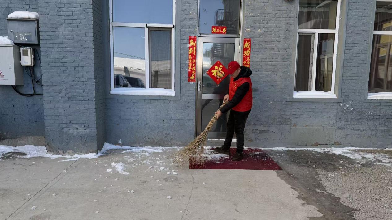 志愿者們身著紅色志愿服,清理積雪雜物、擦拭公共設(shè)施、整治衛(wèi)生死角,以實際行動美化場區(qū)環(huán)境。